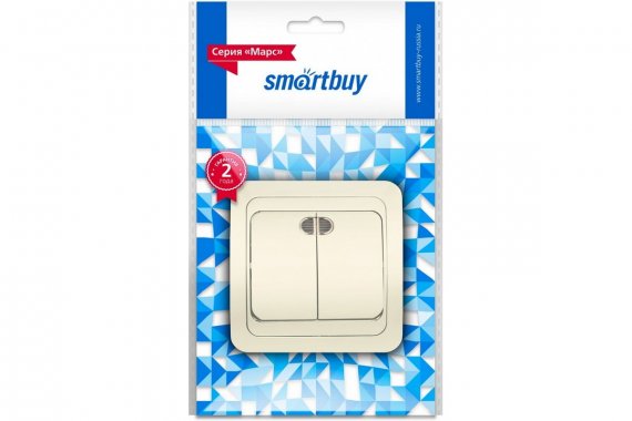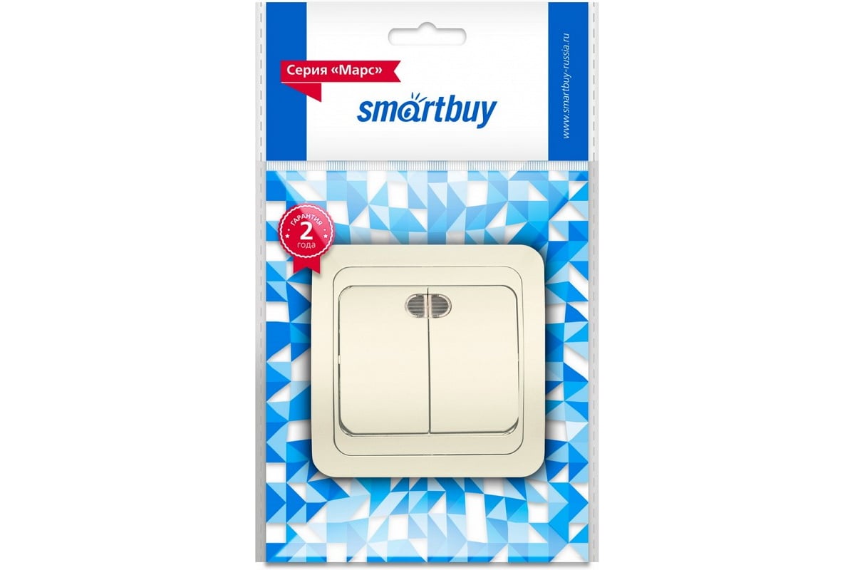 Smartbuy SBE-02i-10-SW2-1-c Выключатель 2-клавишный с индикатором 10А бежевый