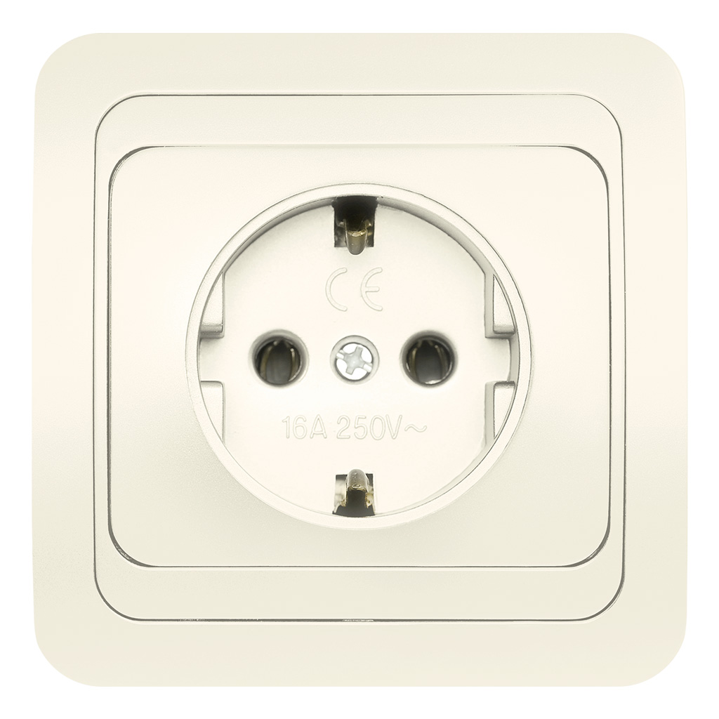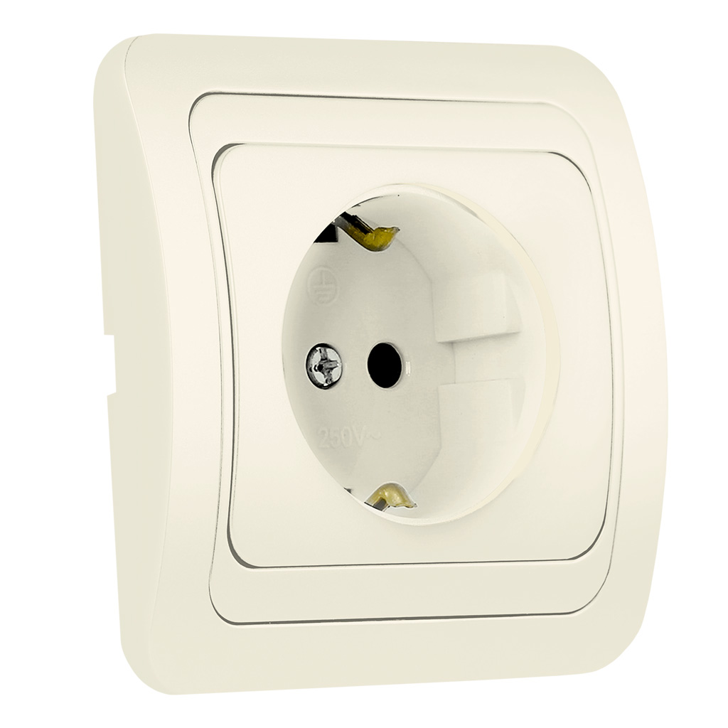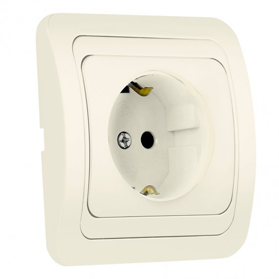 Розетка 1-местная с заземлением 16А бежевая, керамика Марс (SBE-02i-16-S1-Z-c)