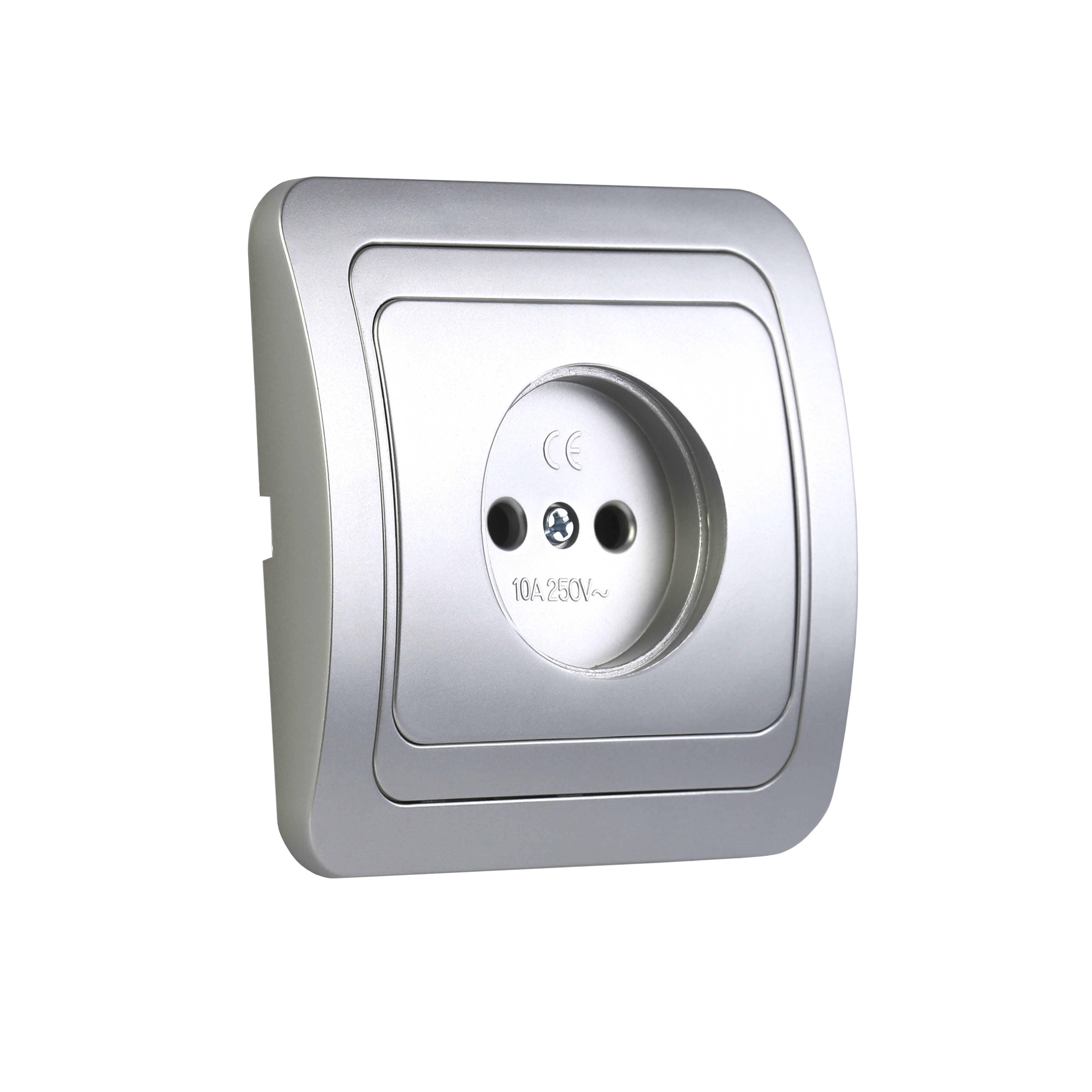 Розетка 1-местная без заземления 10А серебро Марс (SBE-02s-10-S1-N-c)