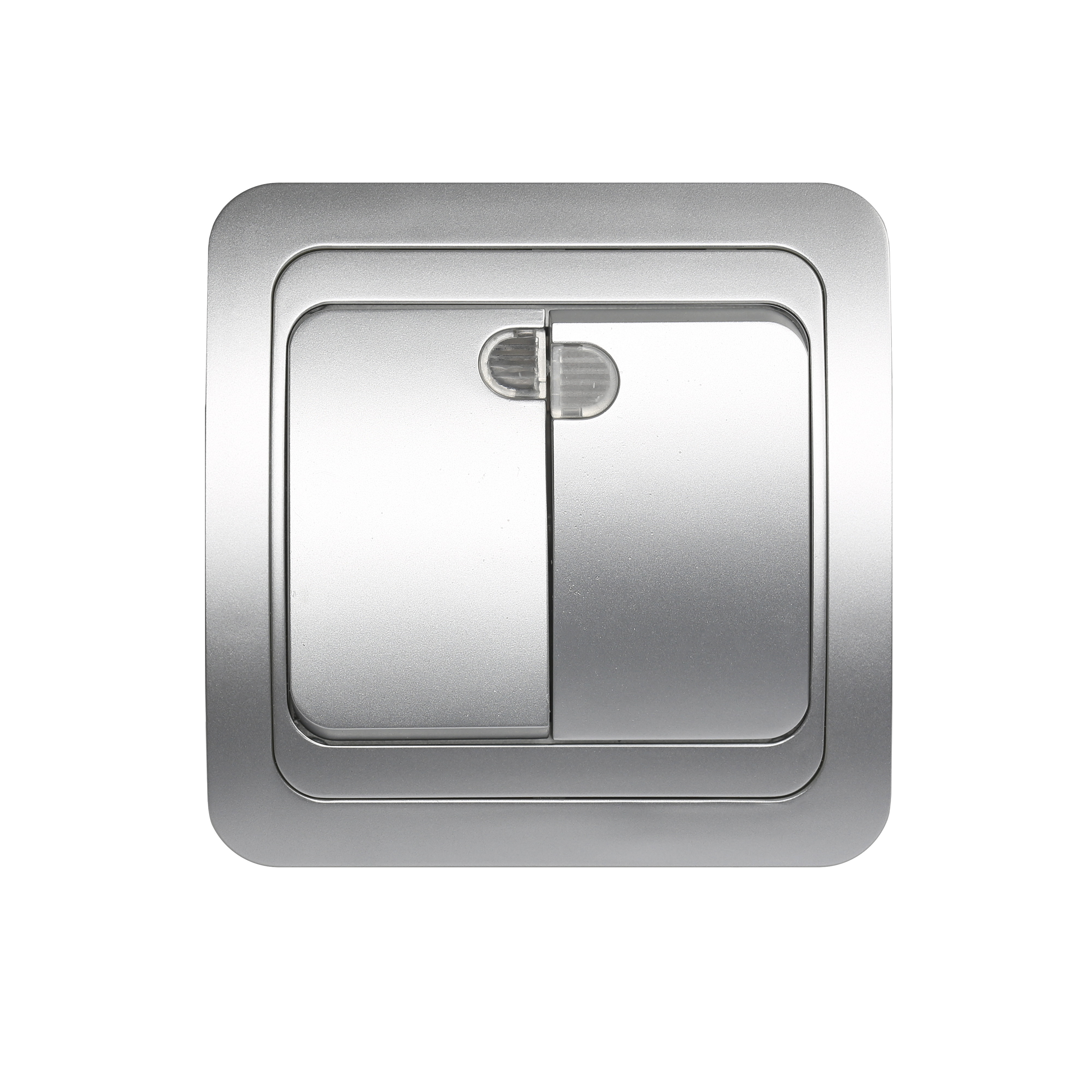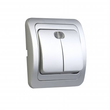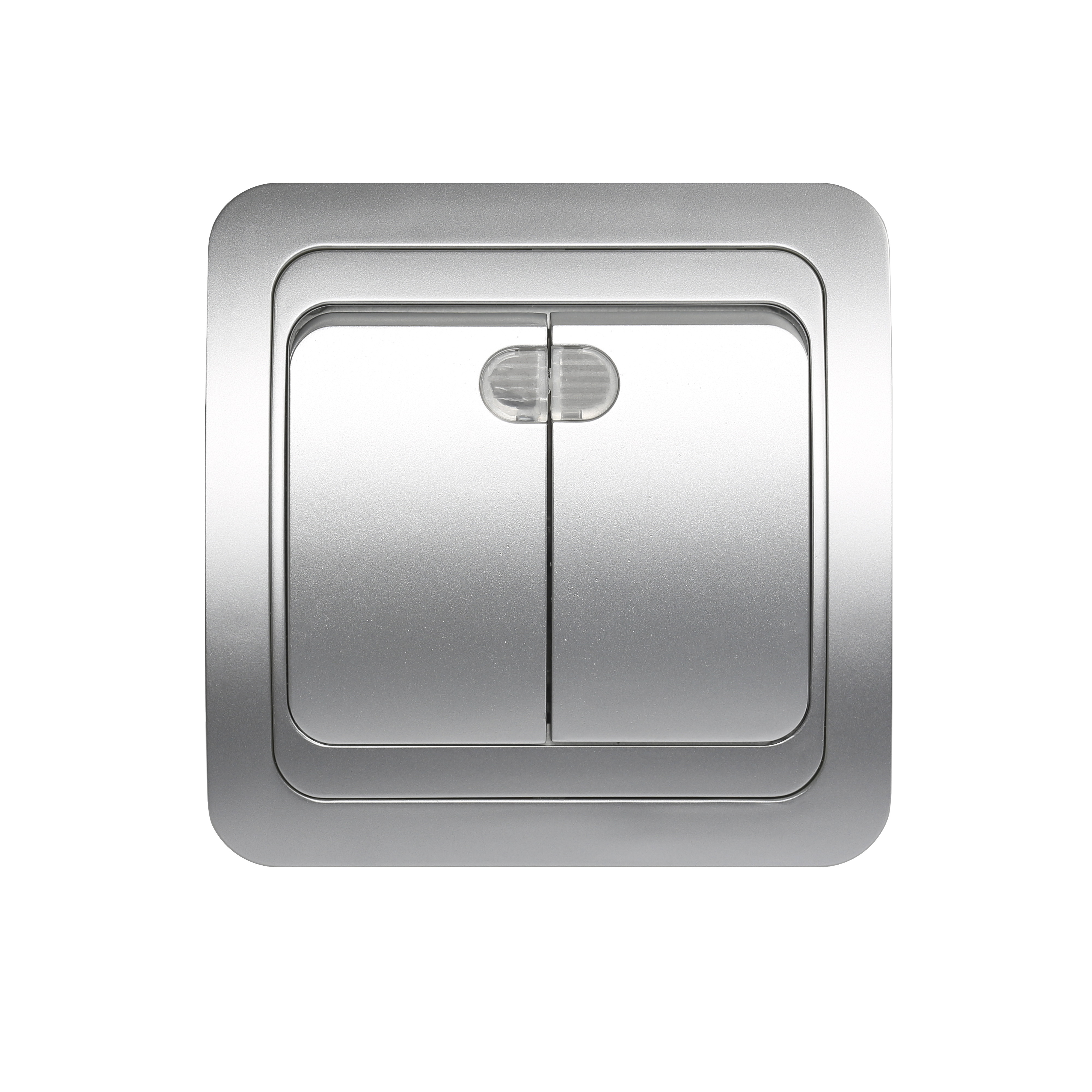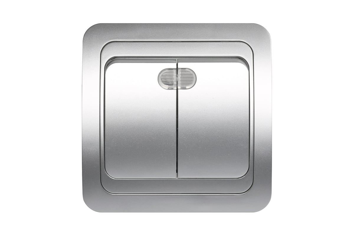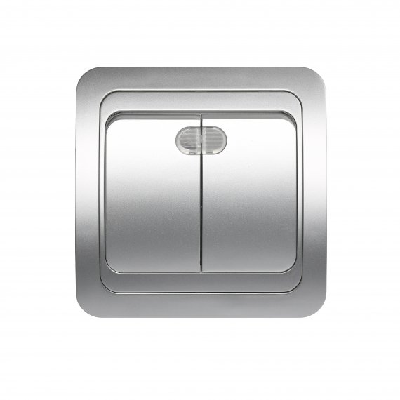 Выключатель 2-клавишный с индикатором 10А серебро Марс (SBE-02s-10-SW2-1-c)