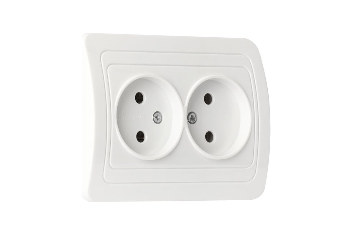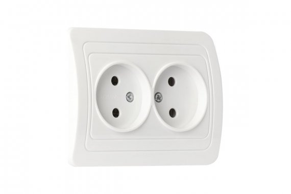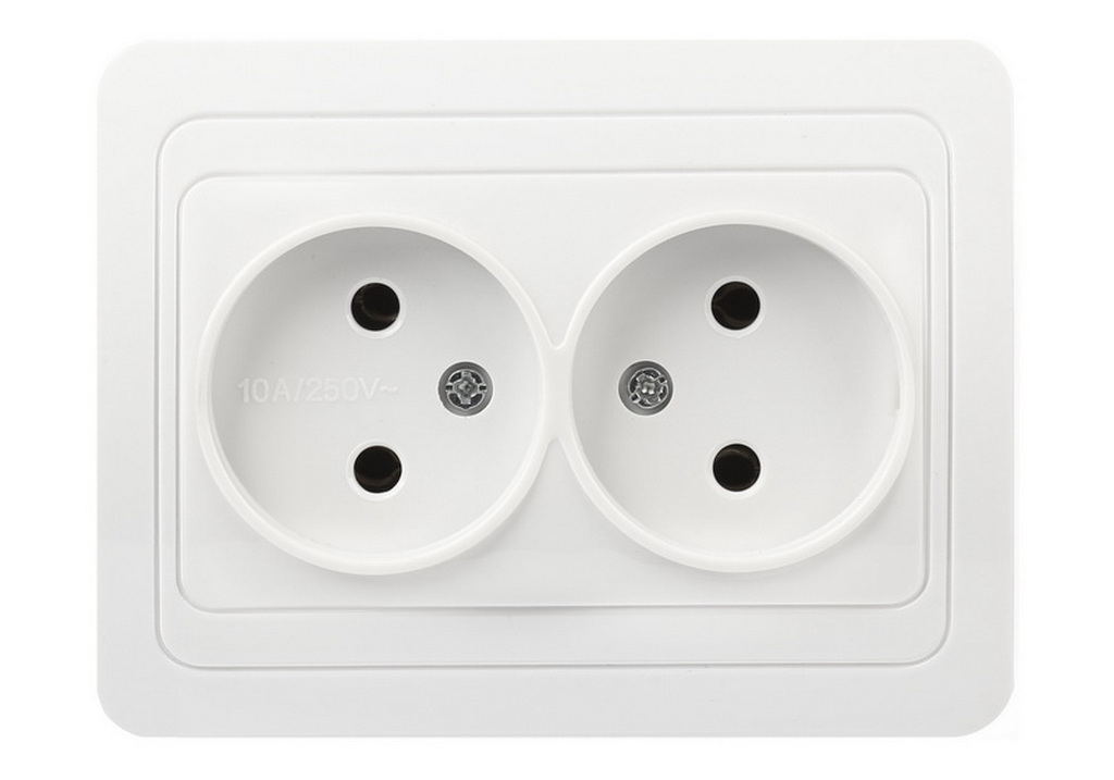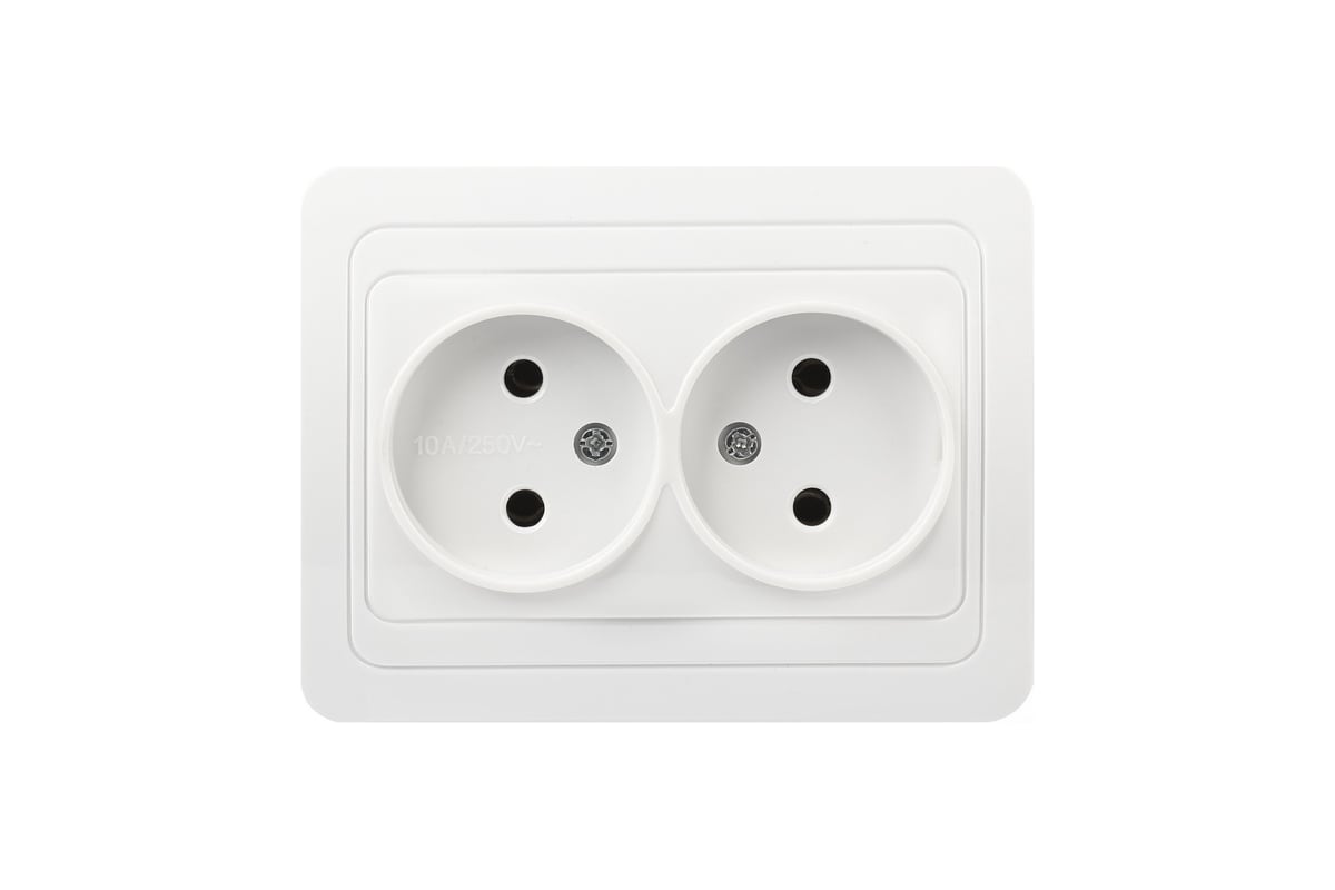 Розетка двойная одноместная без заземления 10А белая Марс (SBE-02w-10-S2-N)