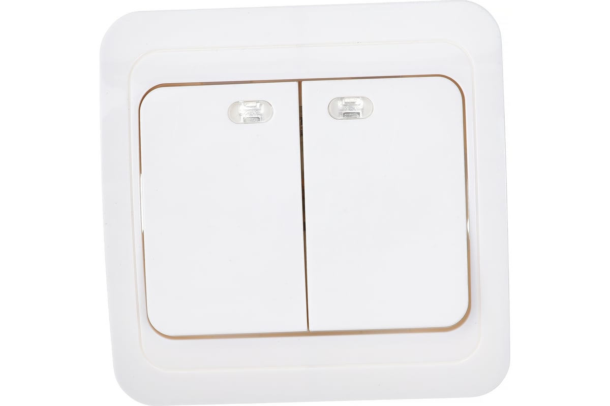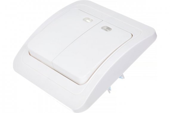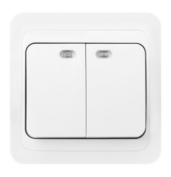 Выключатель 2-клавишный с индикатором 10А белый Марс (SBE-02w-10-SW2-1)