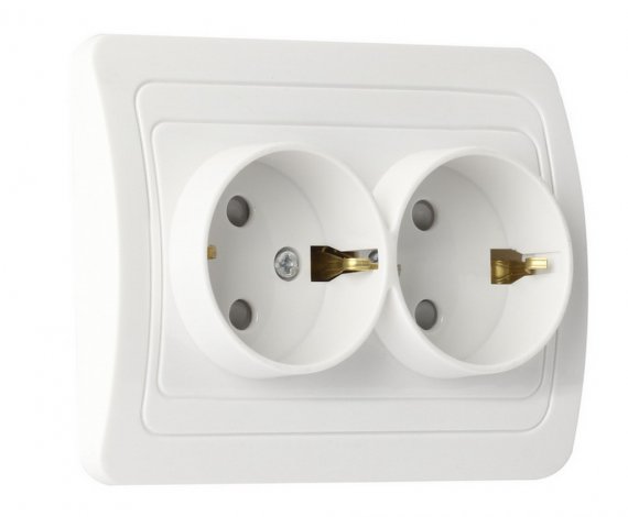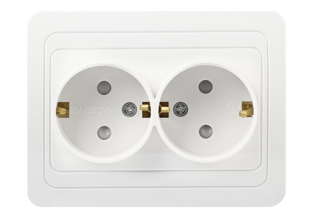 Розетка двойная одноместная с заземлением 16А белая с защ. штор. Марс (SBE-02w-16-S2-1Z)