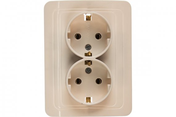 Розетка двойная одноместная с заземлением 16А белая Марс (SBE-02w-16-S2-Z)