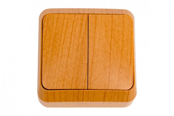 Выключатель 2-клавишный 10А светлое дерево Юпитер (SBE-03lw-10-SW2-0)