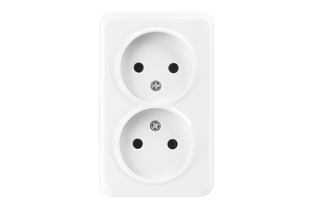 Розетка 2-местная 10А без заземления белая, керамика Юпитер (SBE-03w-10-S2-N-c)