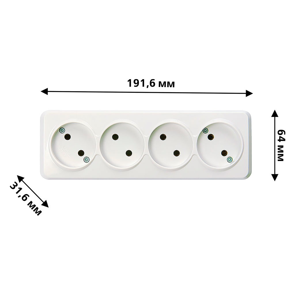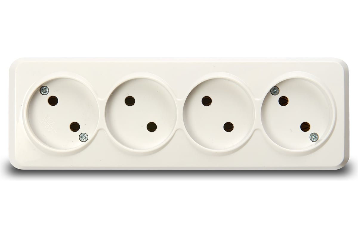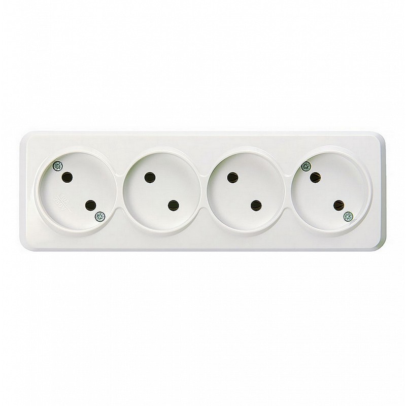 Розетка 4-местная 10А без заземления белая Юпитер (SBE-03w-10-S4-N)