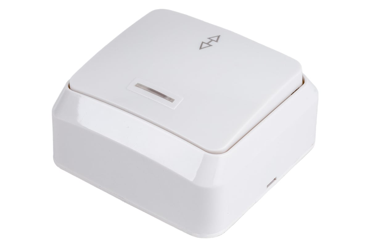 Выключатель проходной 1-клавишный с индикатором 10А белый Юпитер (SBE-03w-10-SW12-1)