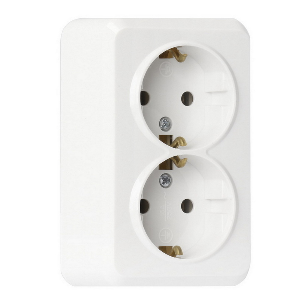 Розетка 2-местная 16А с заземлением белая, керамика Юпитер (SBE-03w-16-S2-Z-c)