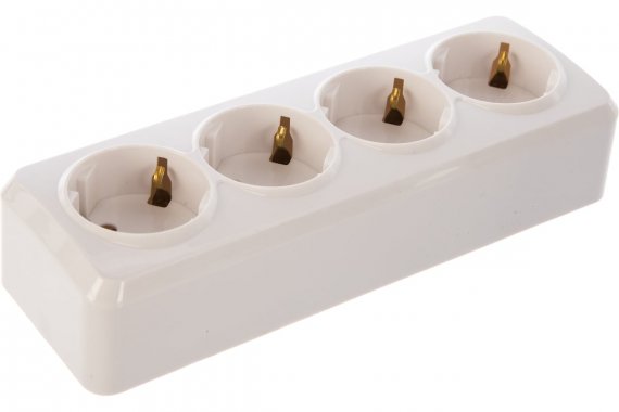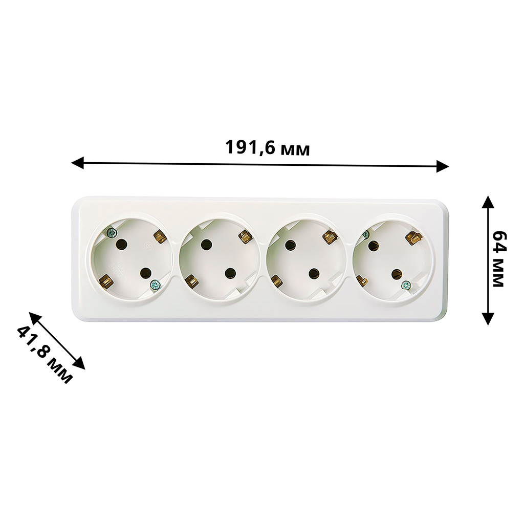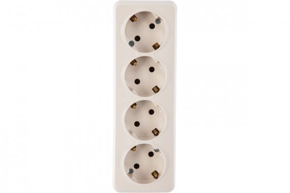 Розетка 4-местная 16А с заземлением белая Юпитер (SBE-03w-16-S4-Z)