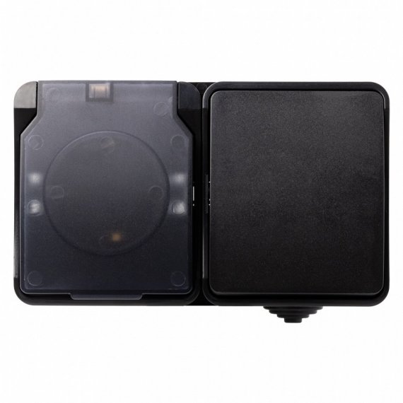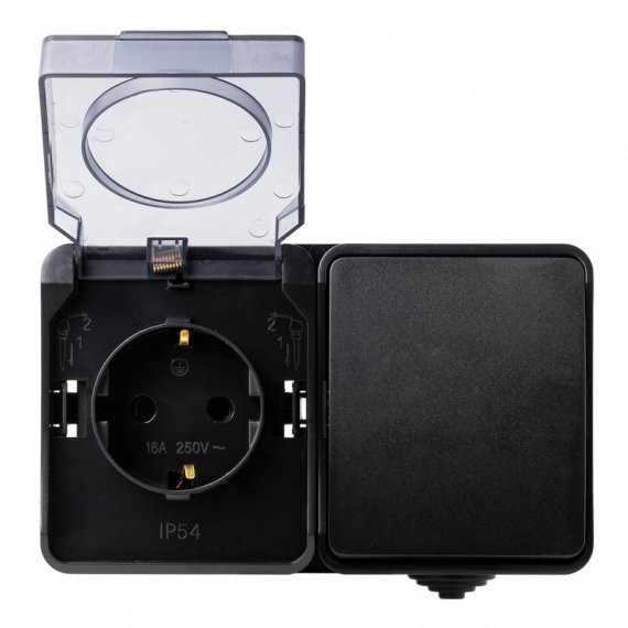 Блок розетка выключатель, IP54, черный, Сатурн (SBE-04b-16-SWS)