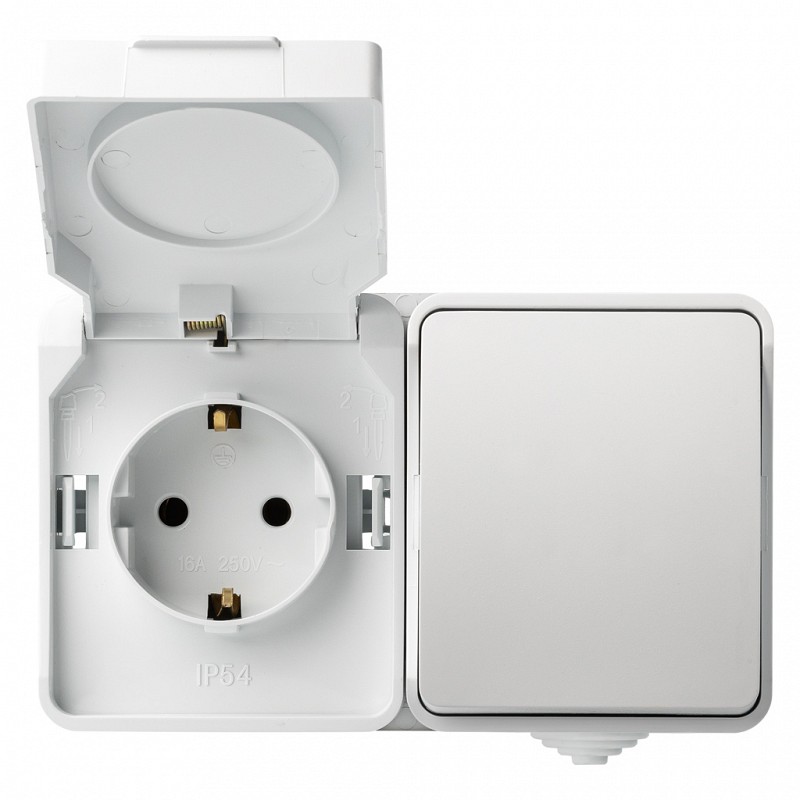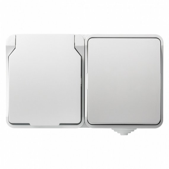 Блок розетка выключатель, IP54, белый, Сатурн (SBE-04g-16-SWS)