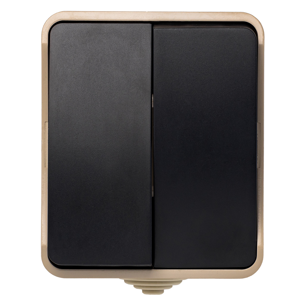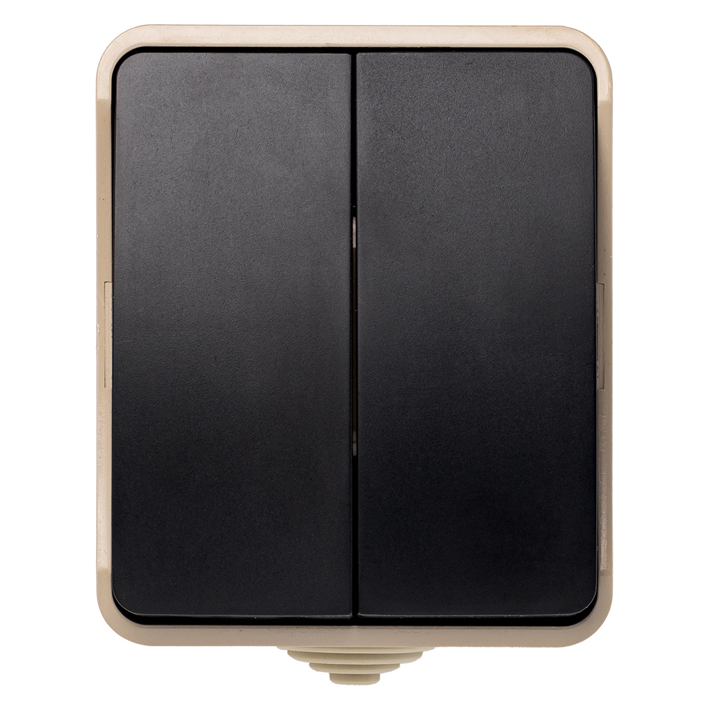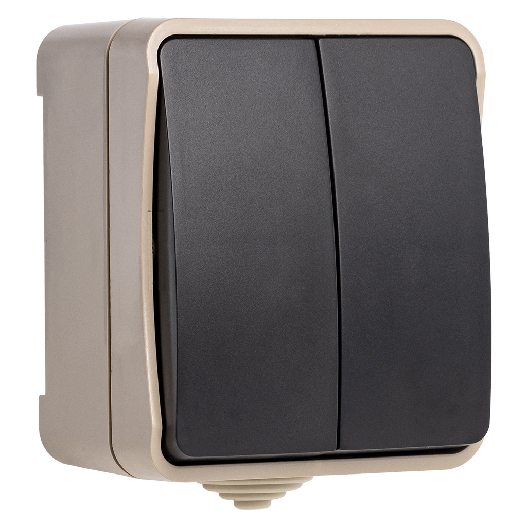 Выключатель 2-клавишный 10А, IP54, бежевый, Сатурн (SBE-04w-10-SW2-0)