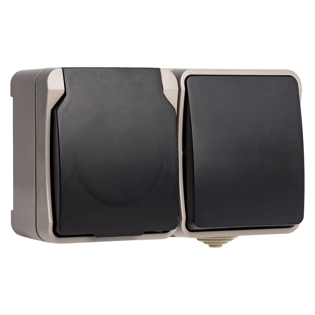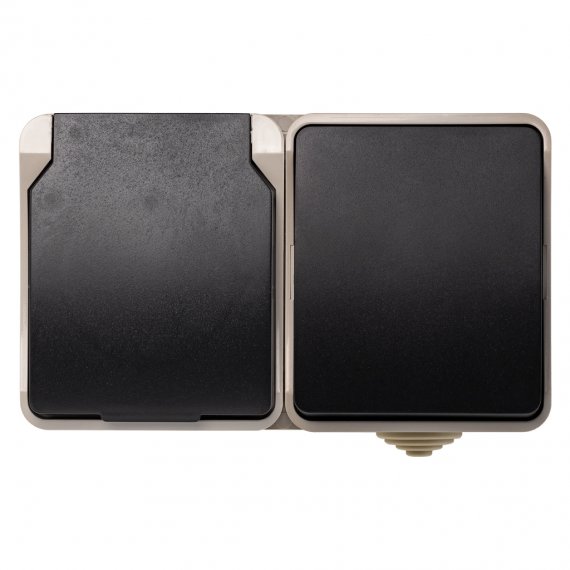 Блок розетка выключатель, IP54, бежевый, Сатурн (SBE-04w-16-SWS)