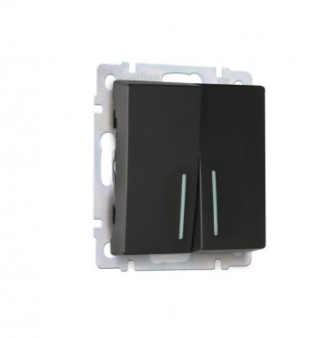 Выключатель 2-клавишный с индикатором 10А черный Нептун (SBE-05b-10-SW2-1)