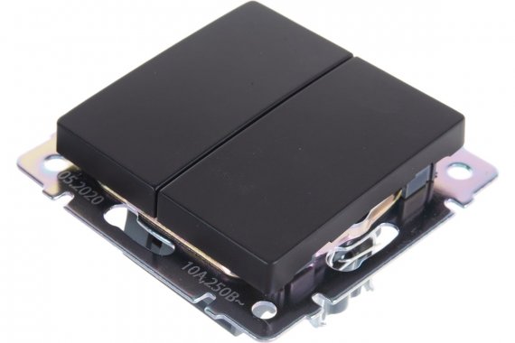 Выключатель проходной 2-клавишный 10А черный Нептун (SBE-05b-10-SW22-0)