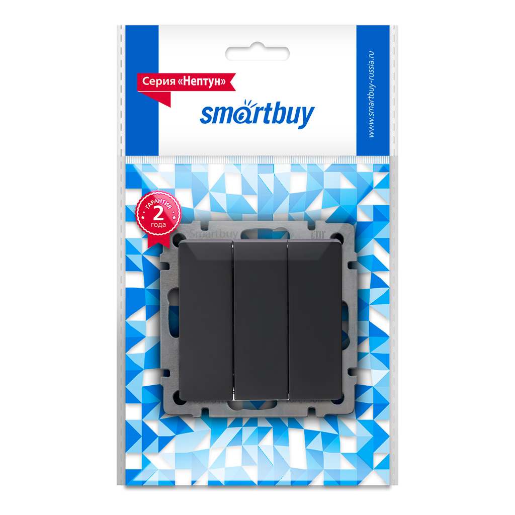 Smartbuy SBE-05b-10-SW3-0 Выключатель 3-клавишный 10А черный Нептун