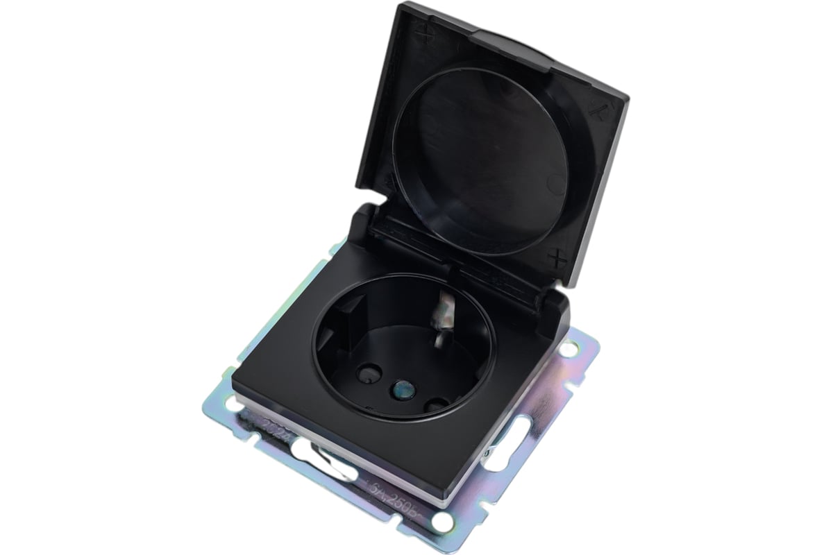Розетка с заземлением и крышкой 16 А, черная Нептун (SBE-05b-16-S1-ZK)