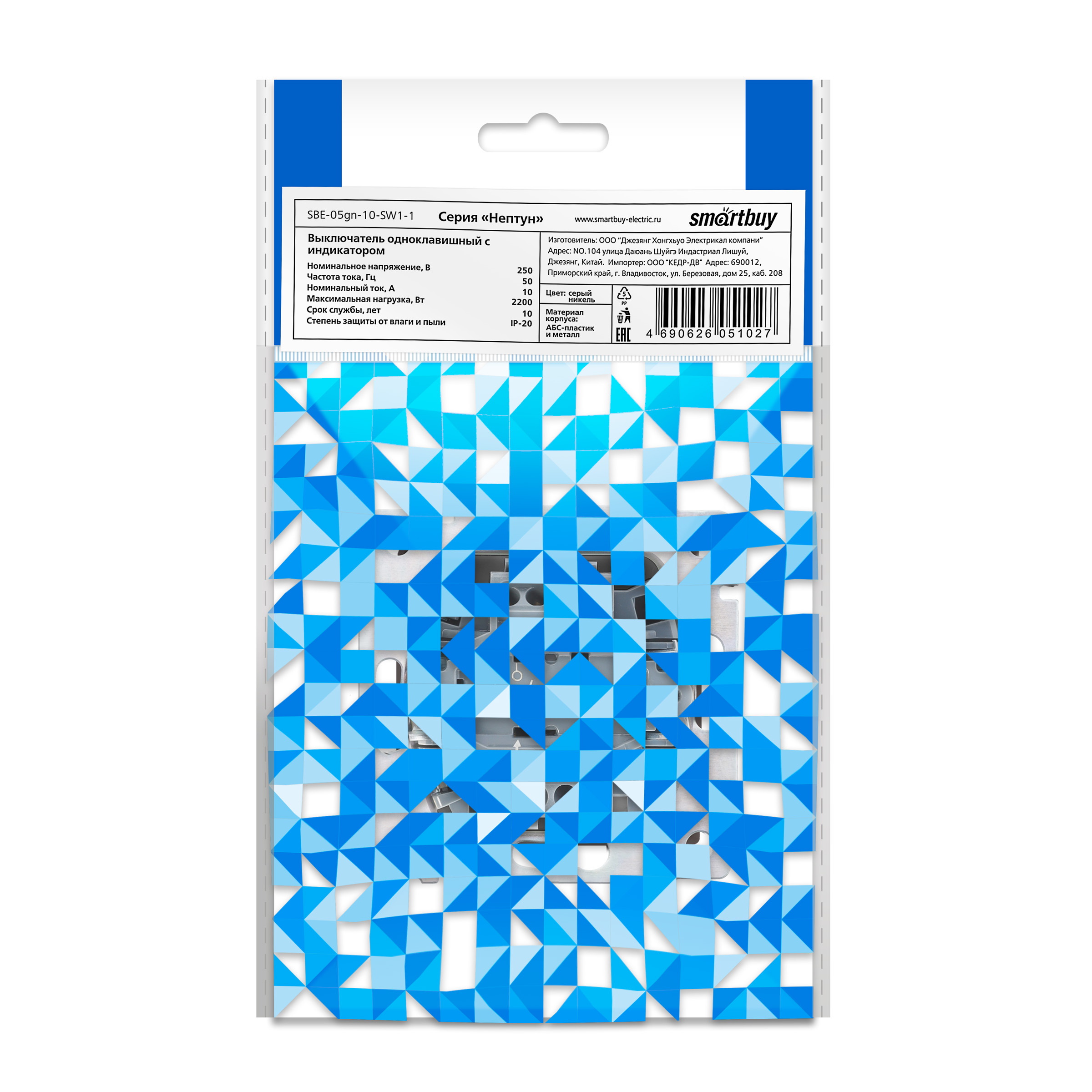 Технические характеристики Smartbuy Нептун с индикатором 10А серый никель SBE-05gn-10-SW1-1