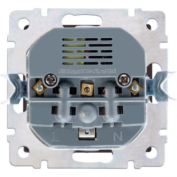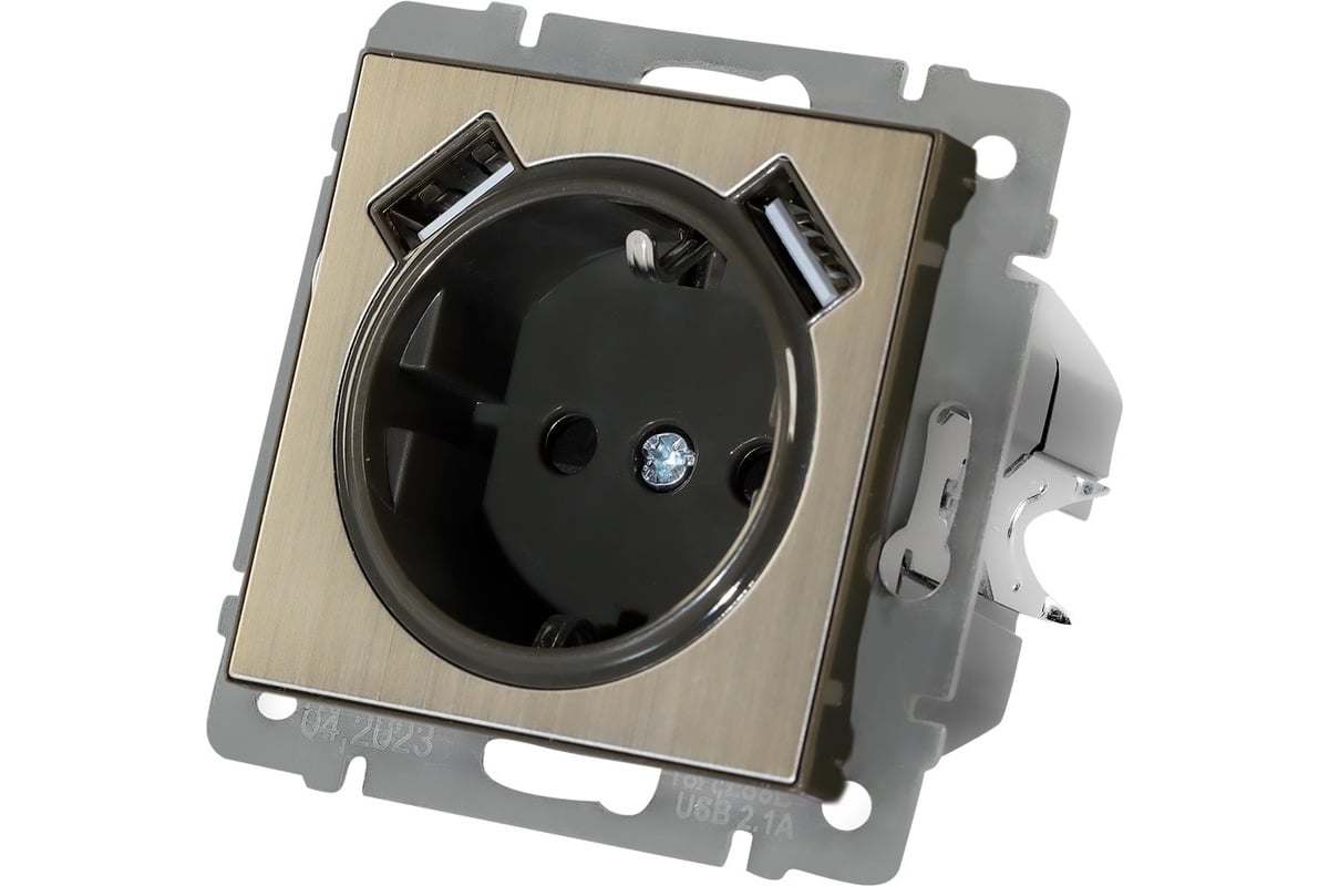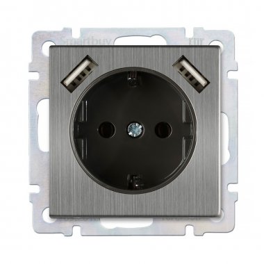 Розетка с заземлением и 2-мя USB 16А серый никель Нептун (SBE-05gn-16-S1-USB)