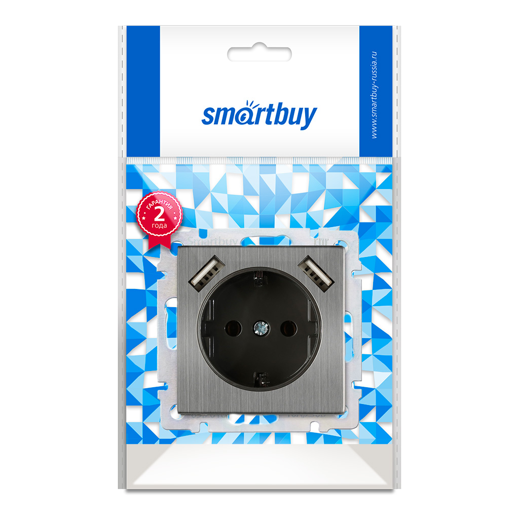Smartbuy SBE-05gn-16-S1-USB Розетка с заземлением и 2-мя USB 16А