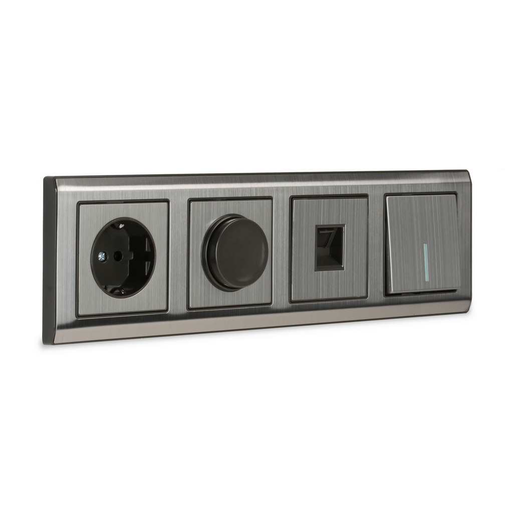 Рамка 4-местная серый никель Нептун (SBE-05gn-Metal-FR-4)