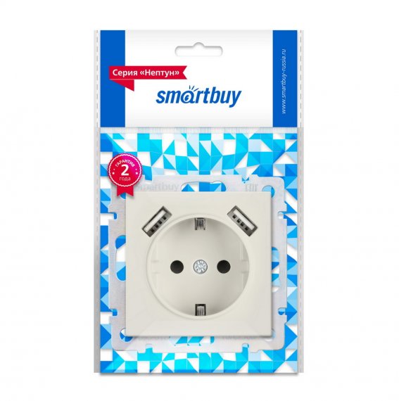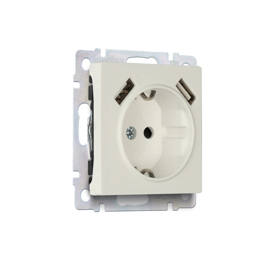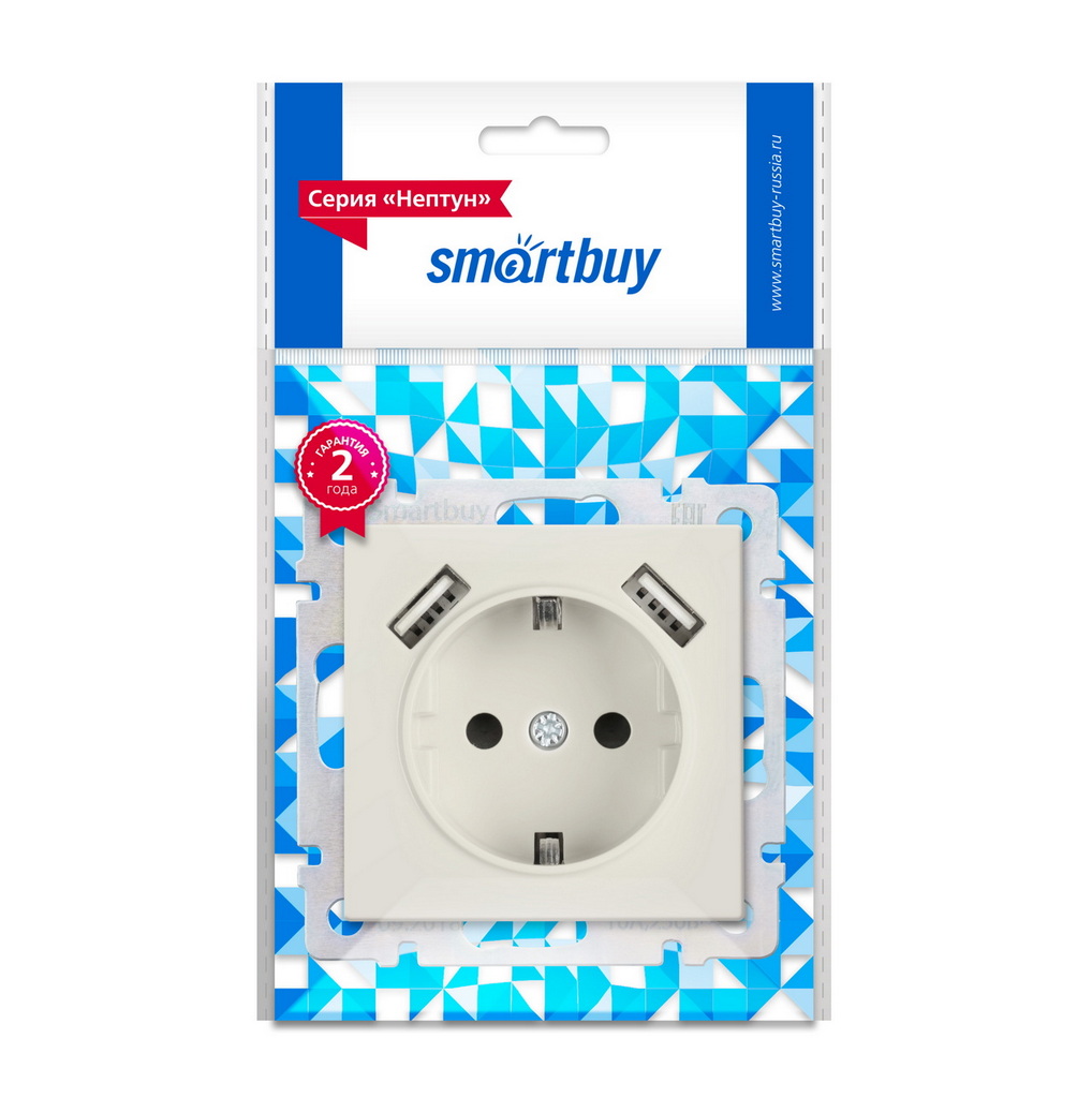 Розетка с заземлением и 2-мя USB 16А бежевая Нептун (SBE-05i-16-S1-USB)