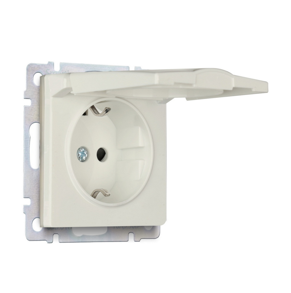 Розетка с заземлением и крышкой 16А, бежевая Нептун (SBE-05i-16-S1-ZK)
