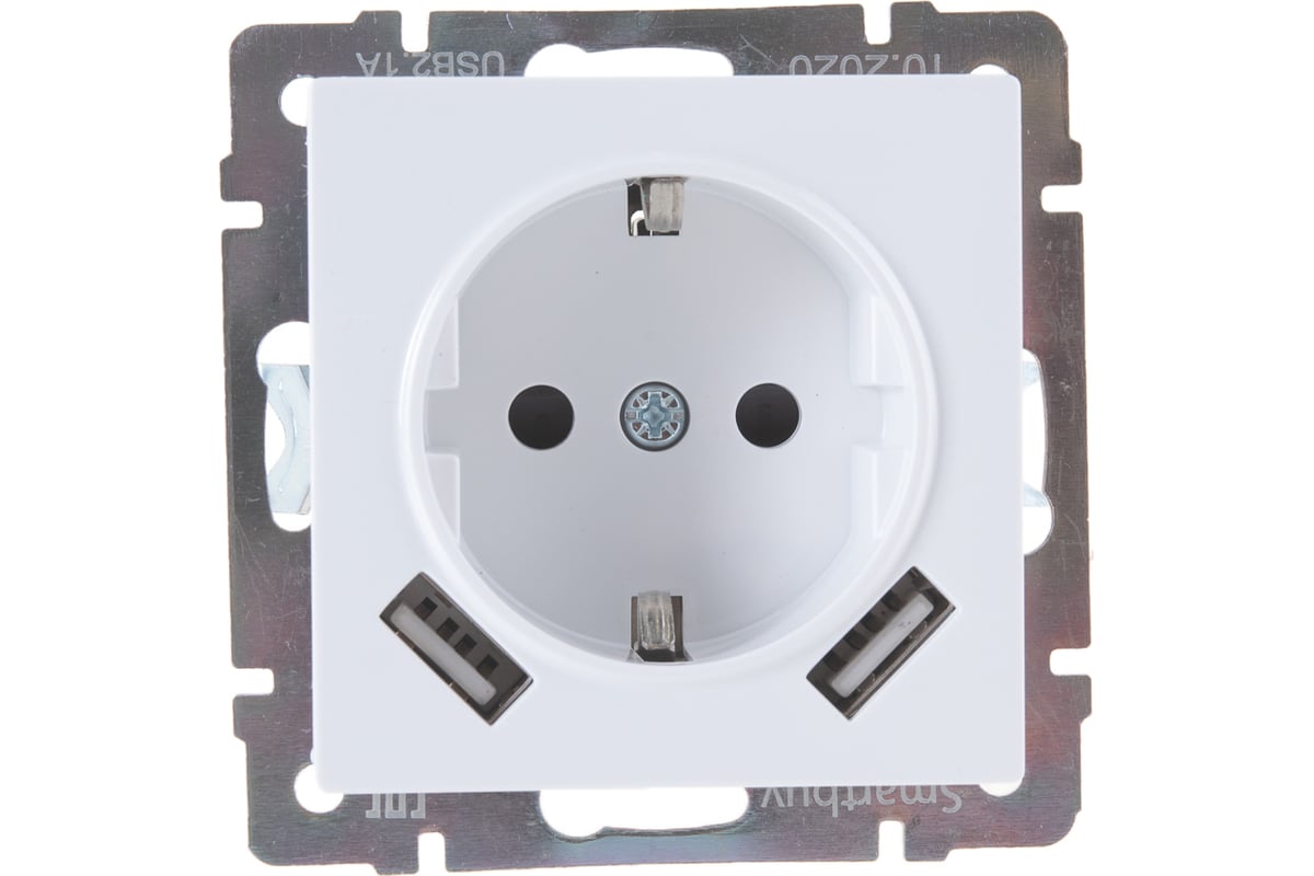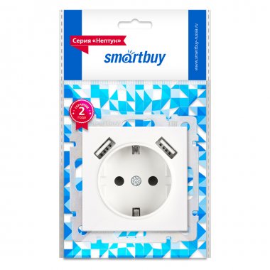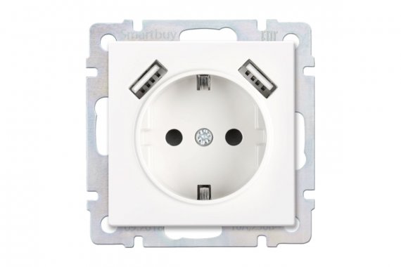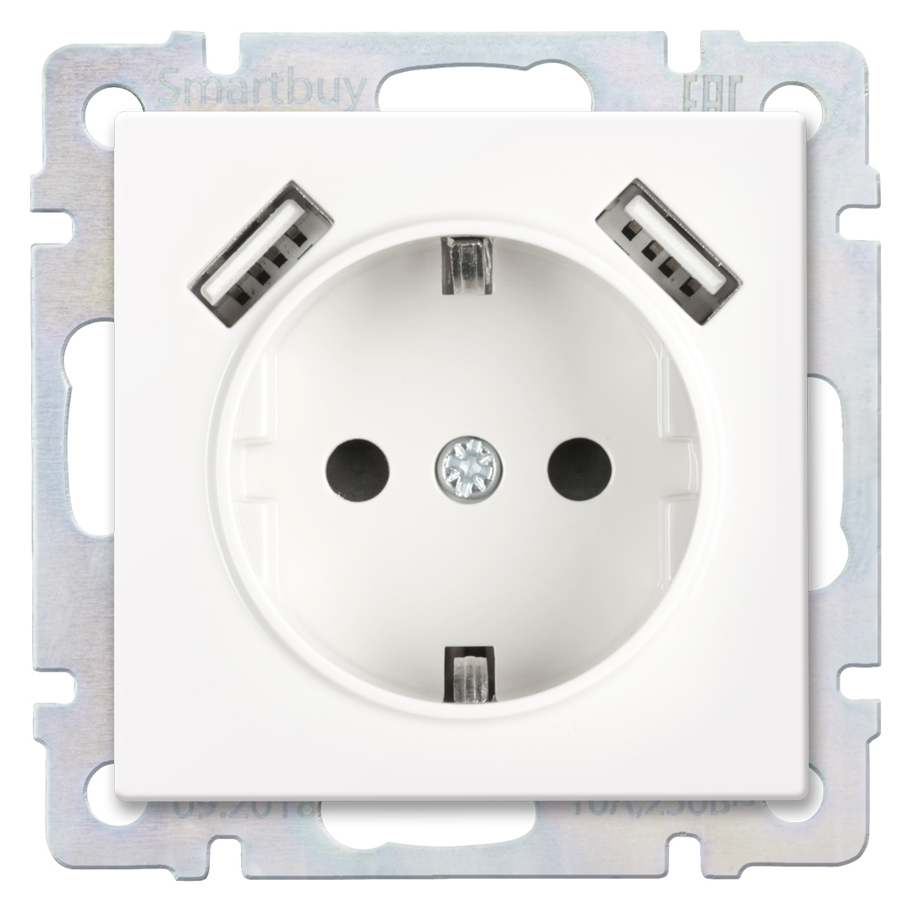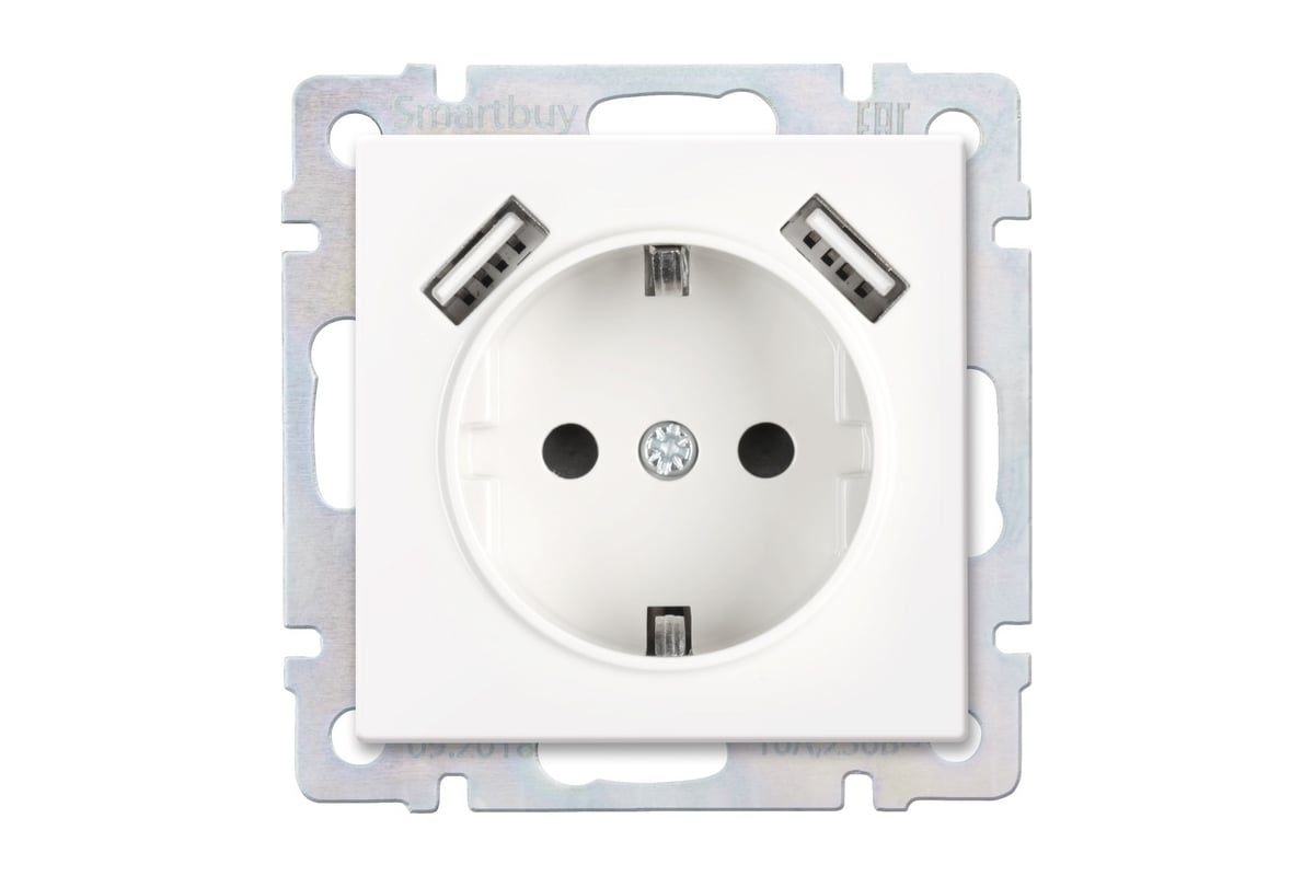 Розетка с заземлением и 2-мя USB 16А белая Нептун (SBE-05w-16-S1-USB)