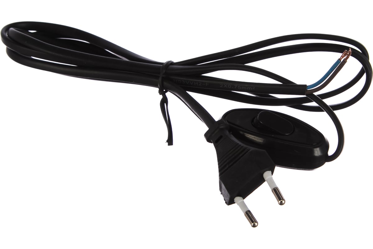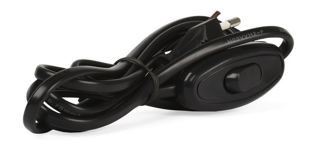Шнур с плоской вилкой и проходным выключателем Smartbuy, 1,7 метра черный ШВВП 2х0,75 (SBE-06-P05-b)