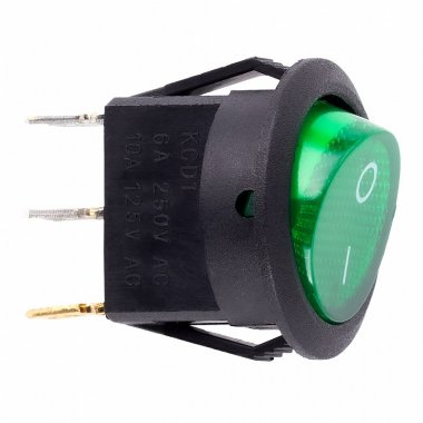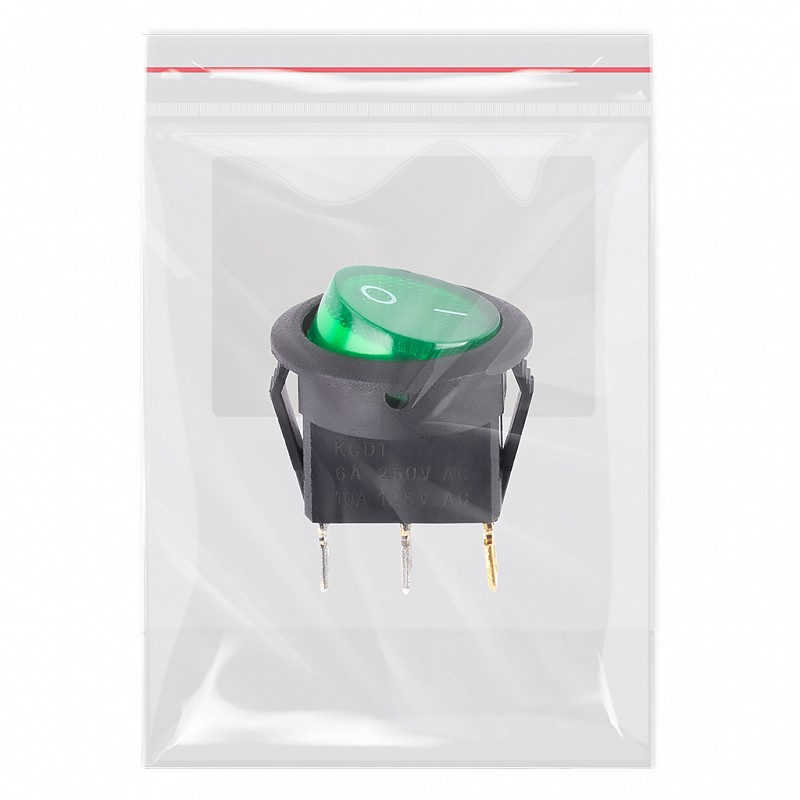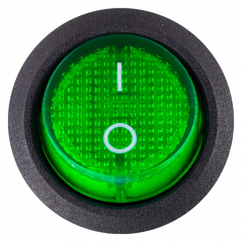 Выключатель клавишный круглый 250В 6А (3с) ON-OFF зеленый с подсветкой (SBE-06-S30g-rp)