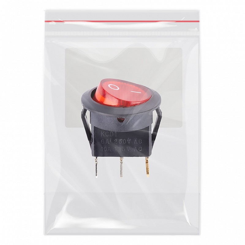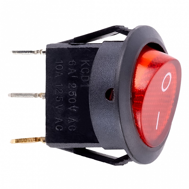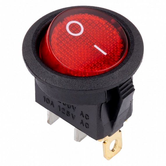 Выключатель клавишный круглый 250В 6А (3с) ON-OFF красный с подсветкой (SBE-06-S30r-rp)