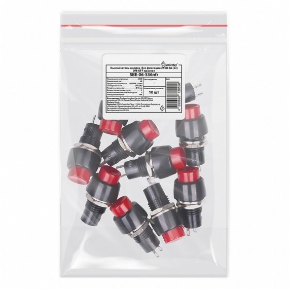Smartbuy SBE-06-S36nfr Выключатель-кнопка без фиксации 250В 2А (2с) ON-OFF