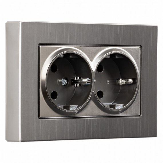 Розетка двойная с заземлением серый никель Нептун от бренда SMARTBUY. Обладает заземлением и выполнена в цвете серый никель. Способ монтажа – встраиваемый. Допустимая нагрузка по току составляет 16А.