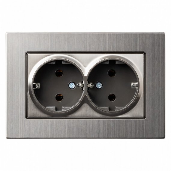 Розетка двойная с заземлением серый никель с рамкой Нептун (SBE-06gn-16-S2-Z)