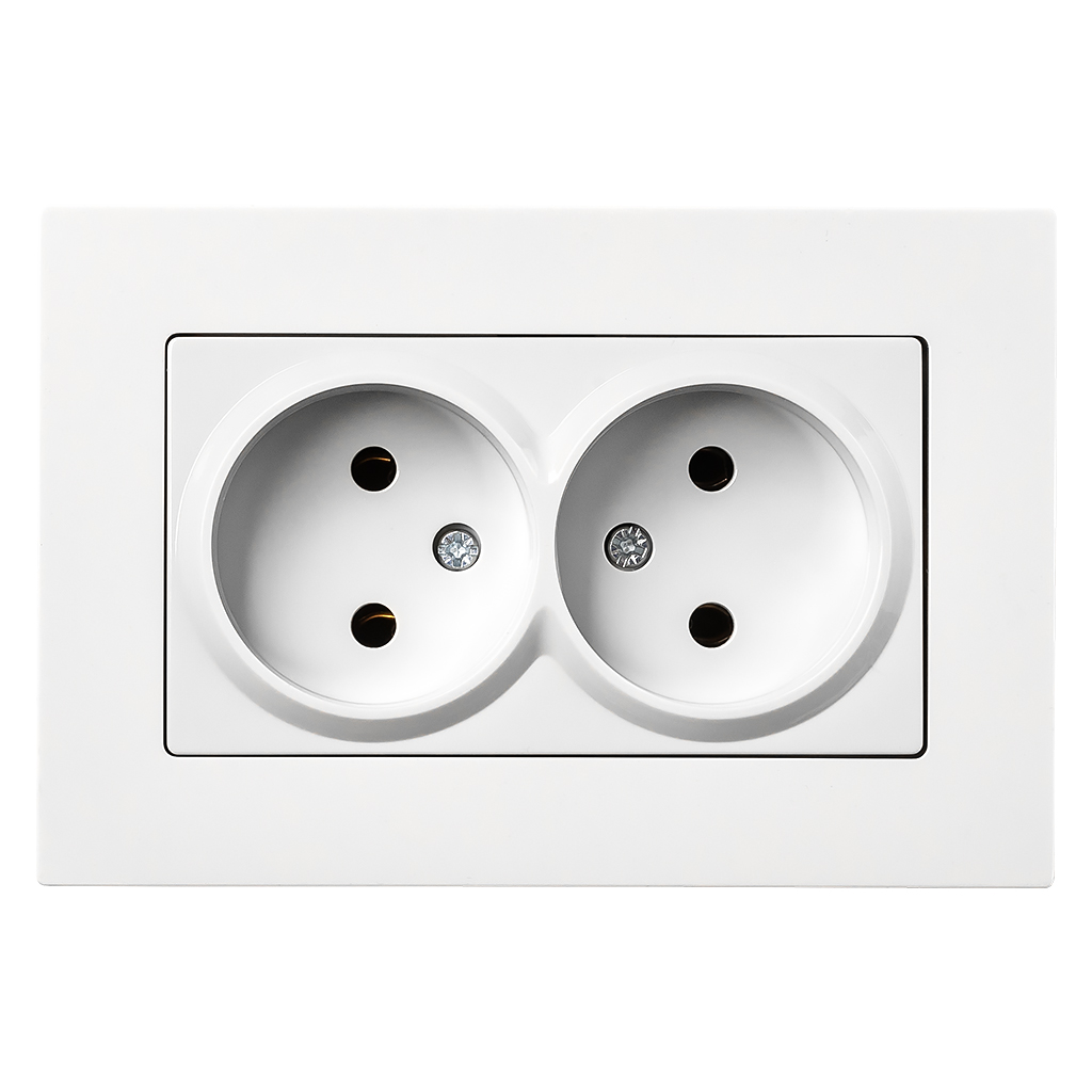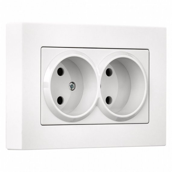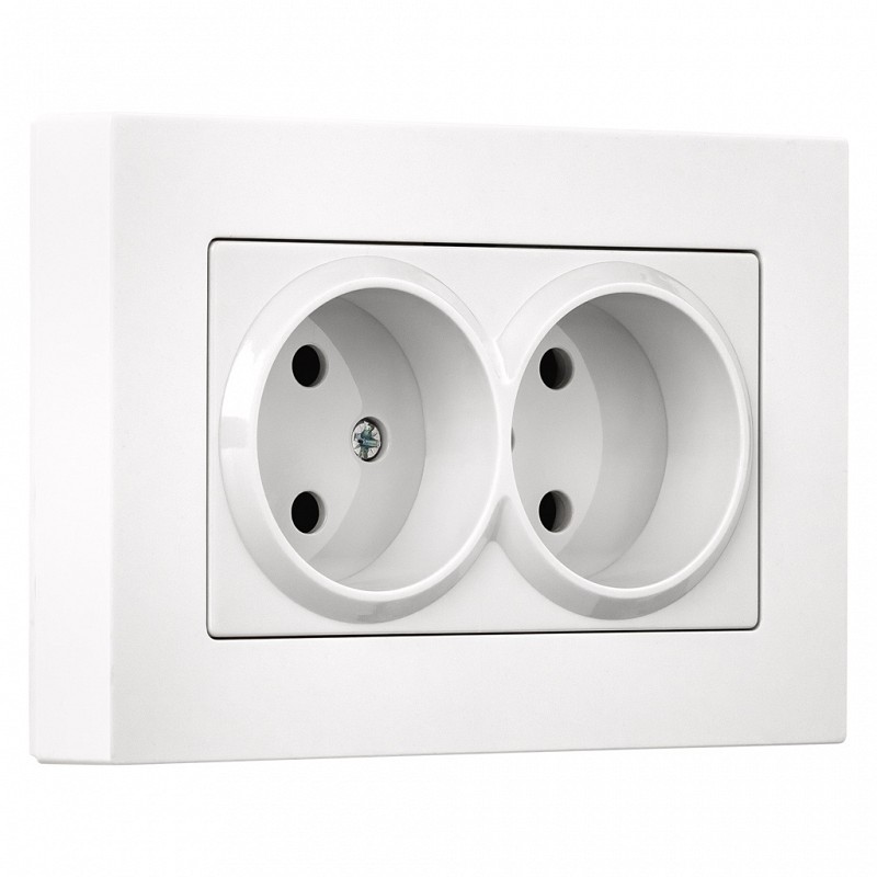 Розетка двойная без заземления белая с рамкой Нептун (SBE-06w-10-S2-N)