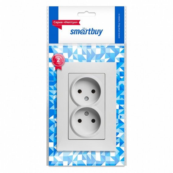 Данный товар представляет собой двойную розетку без заземления от известного производителя SMARTBUY. Изделие выполнено в белом цвете и предназначено для скрытой установки. Максимальная допустимая нагрузка по току составляет 10А.