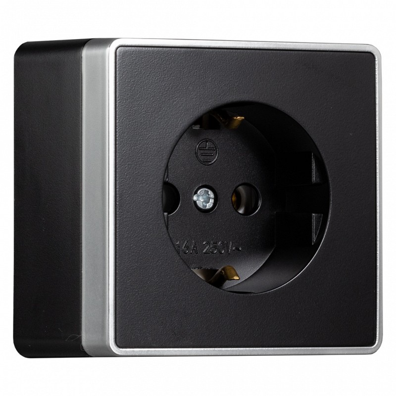 Розетка 1-местная 16А с заземлением черная Сириус (SBE-07b-16-S1-Z)