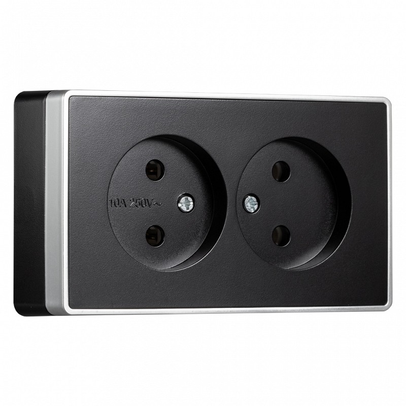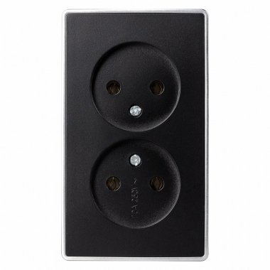 Розетка 2-местная 10А без заземления черная Сириус (SBE-07b-16-S2-N)