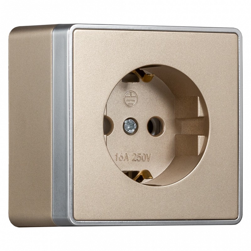 Розетка 1-местная 16А с заземлением шампань Сириус (SBE-07c-16-S1-Z)