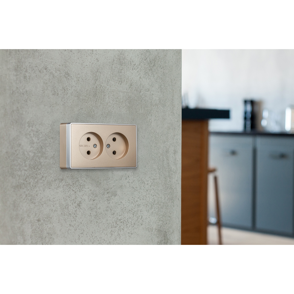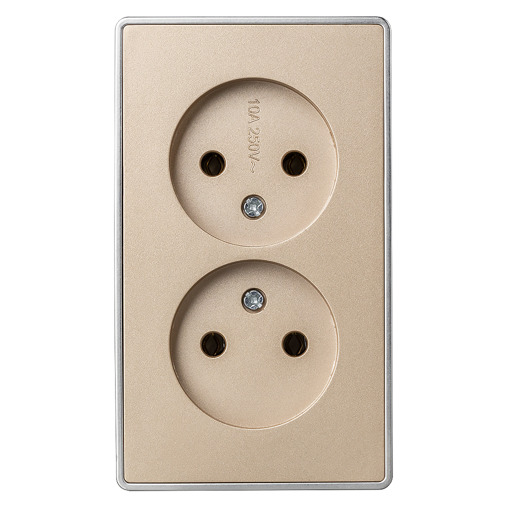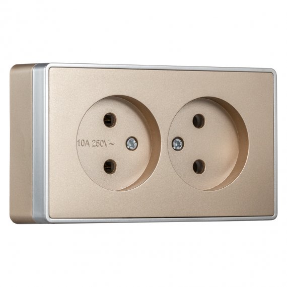 Розетка 2-местная 10А без заземления шампань Сириус (SBE-07с-16-S2-N)