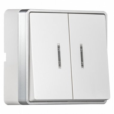 Купите двухклавишный выключатель с индикатором 10А белого цвета серии Сириус от производителя SMARTBUY. Предназначен для открытой установки.