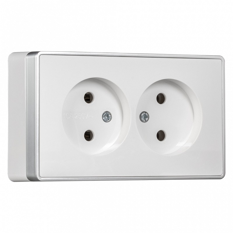 Розетка 2-местная 10А без заземления белая Сириус (SBE-07w-16-S2-N)