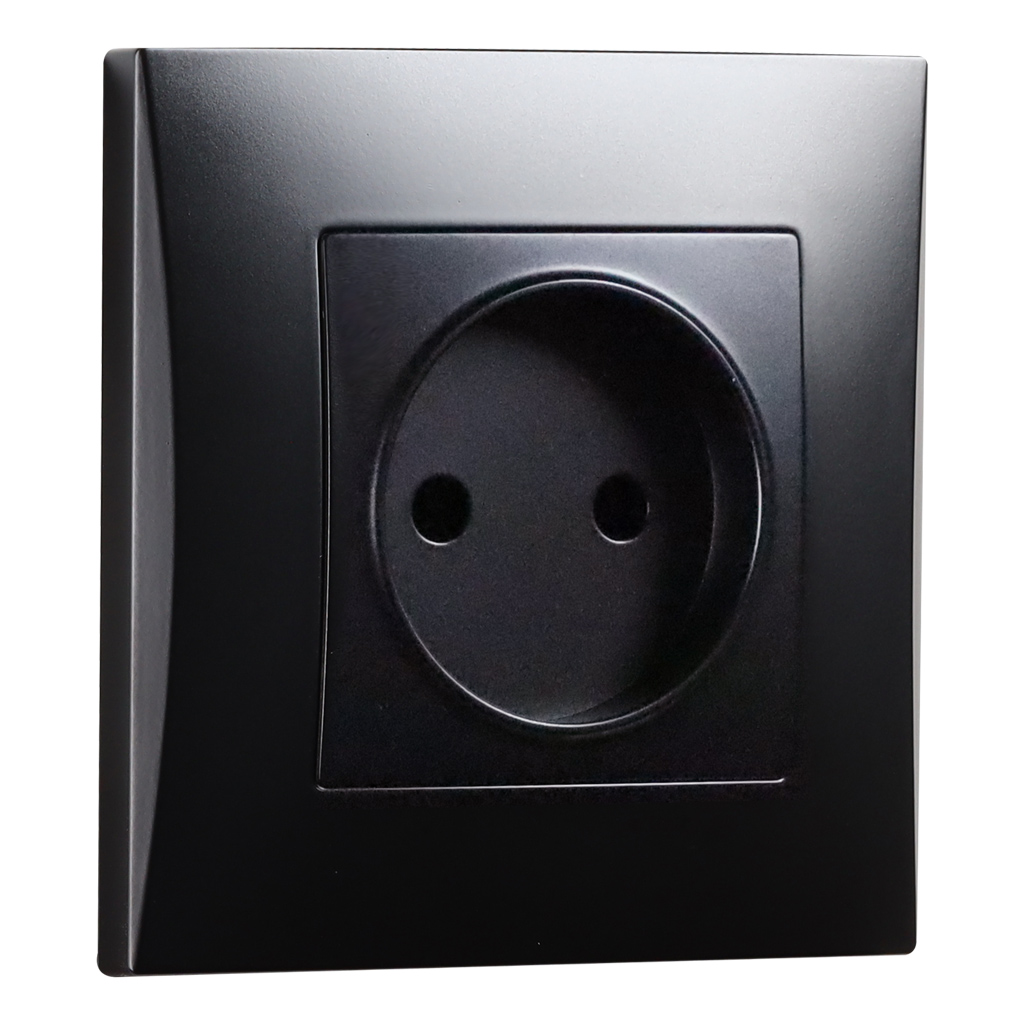 Розетка без заземления 10А черная Вега (SBE-08b-10-S1-N)