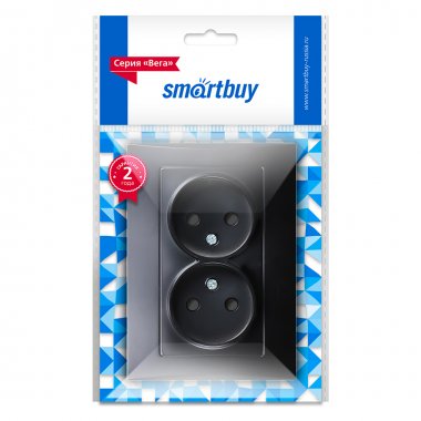 Smartbuy SBE-08b-10-S2-N Розетка двойная без заземления 10A черная Вега