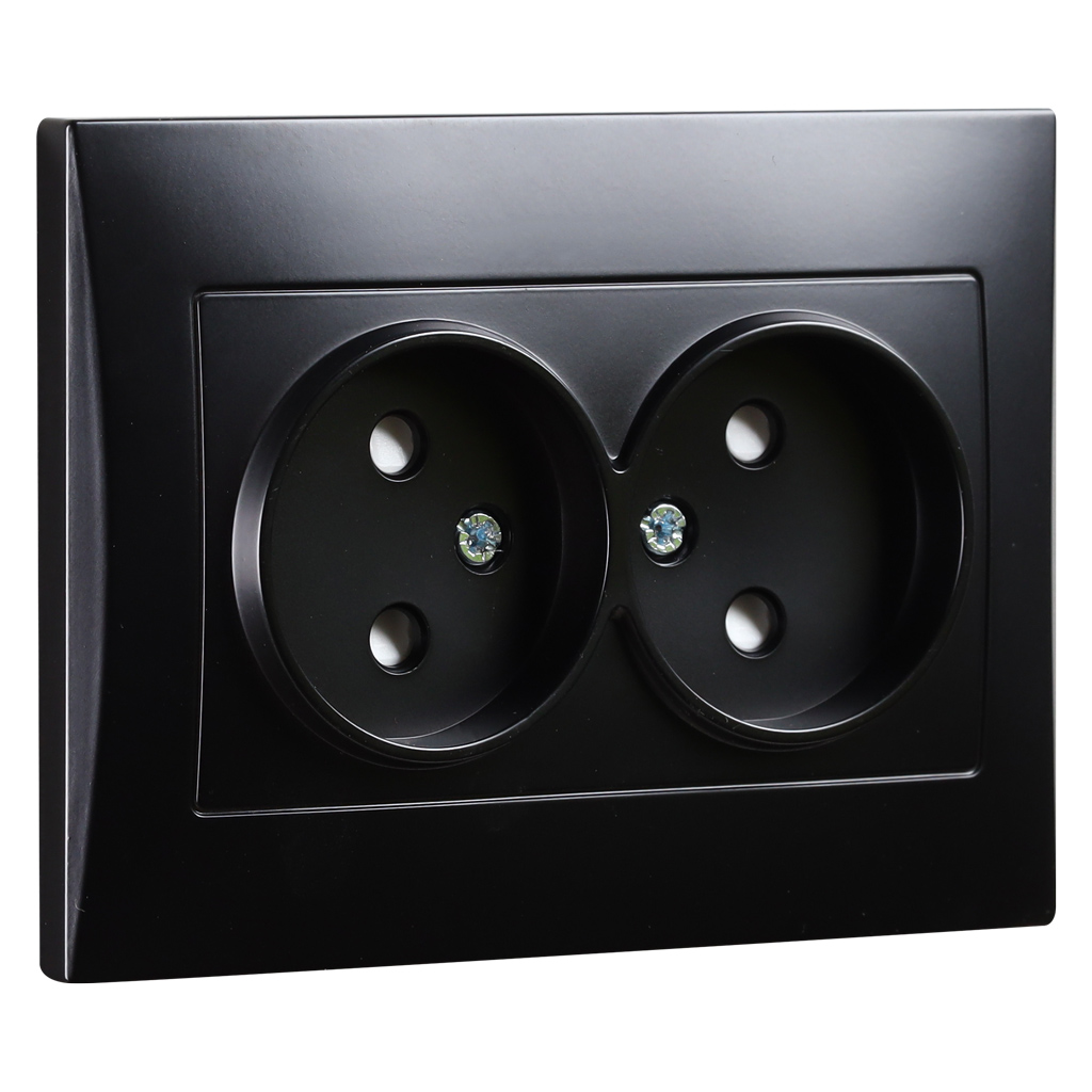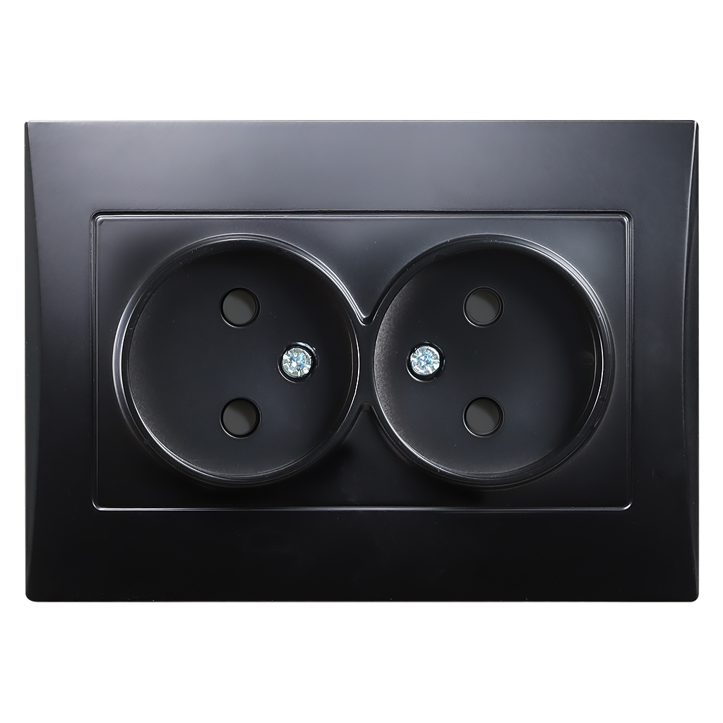 Розетка двойная без заземления 10A черная Вега (SBE-08b-10-S2-N)