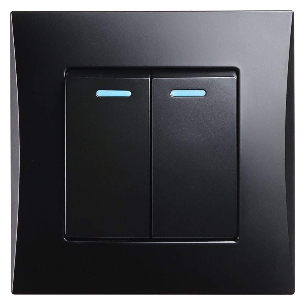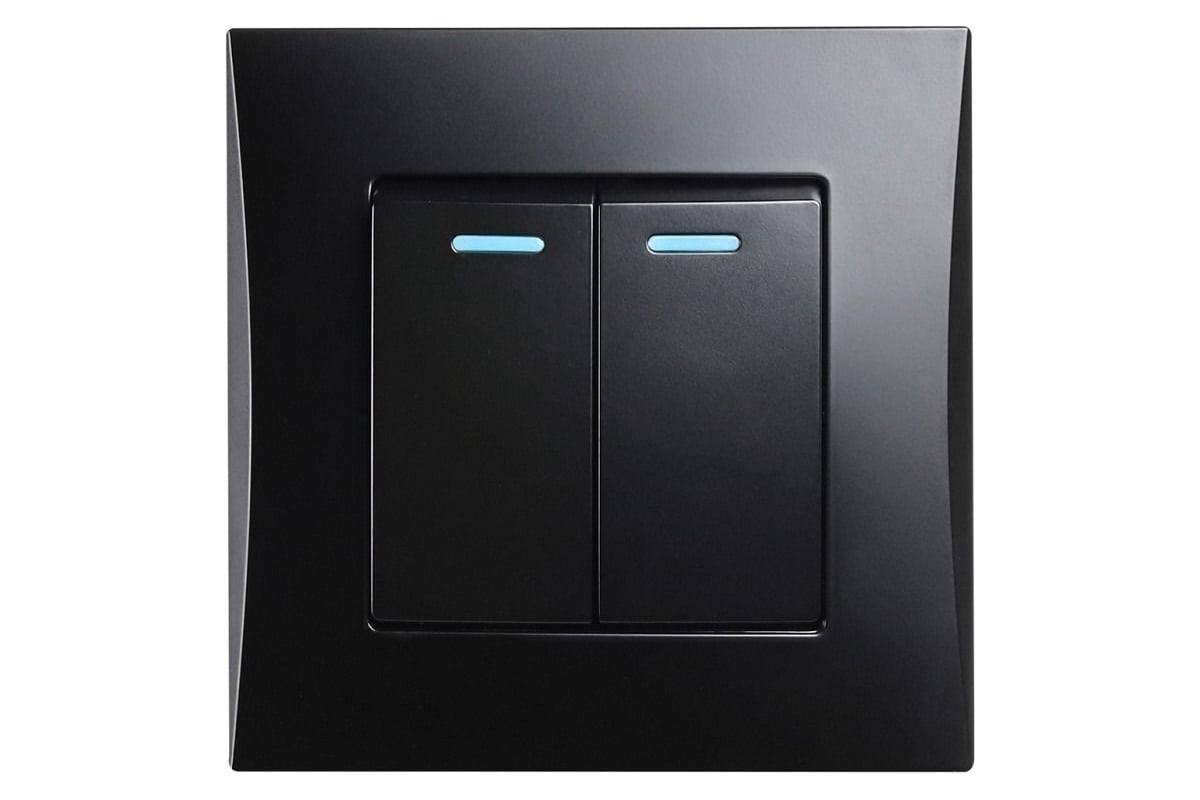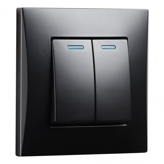 Выключатель 2-клавишный с индикатором 10А черный Вега (SBE-08b-10-SW2-1)
