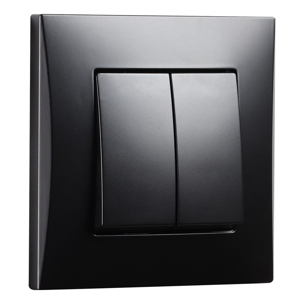 Выключатель проходной 2-клавишный 10А черный Вега (SBE-08b-10-SW22-0)