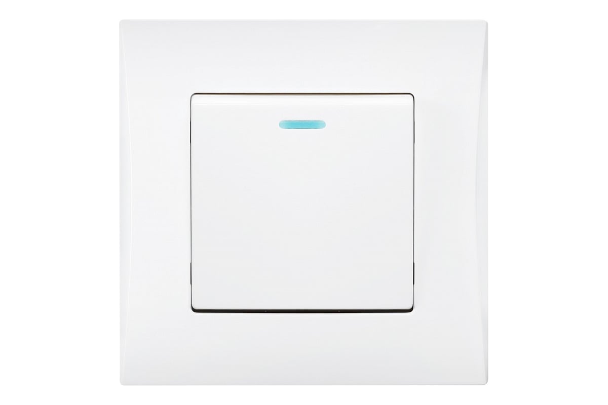 Выключатель 1-клавишный с индикатором 10А белый Вега (SBE-08w-10-SW1-1)