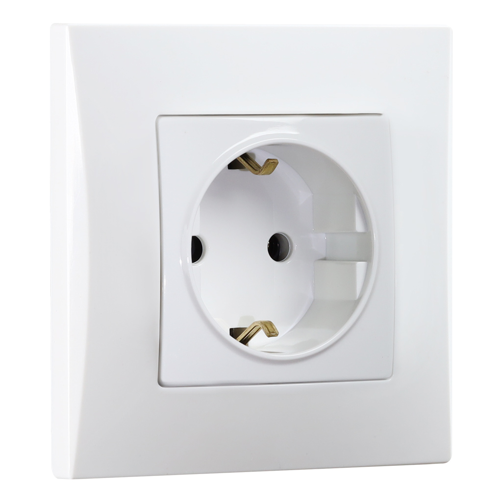 Розетка с заземлением 16А белая Вега (SBE-08w-16-S1-Z)
